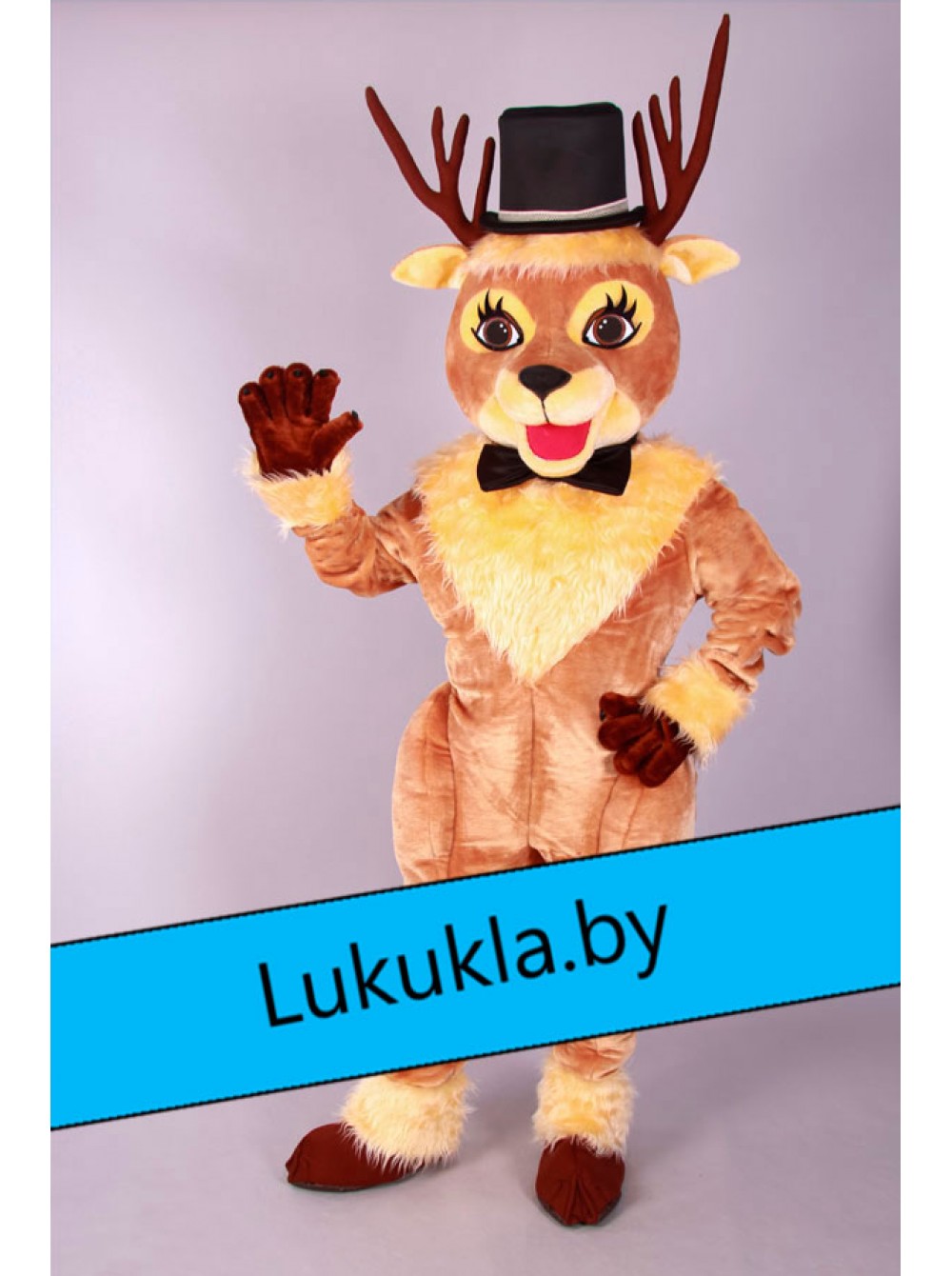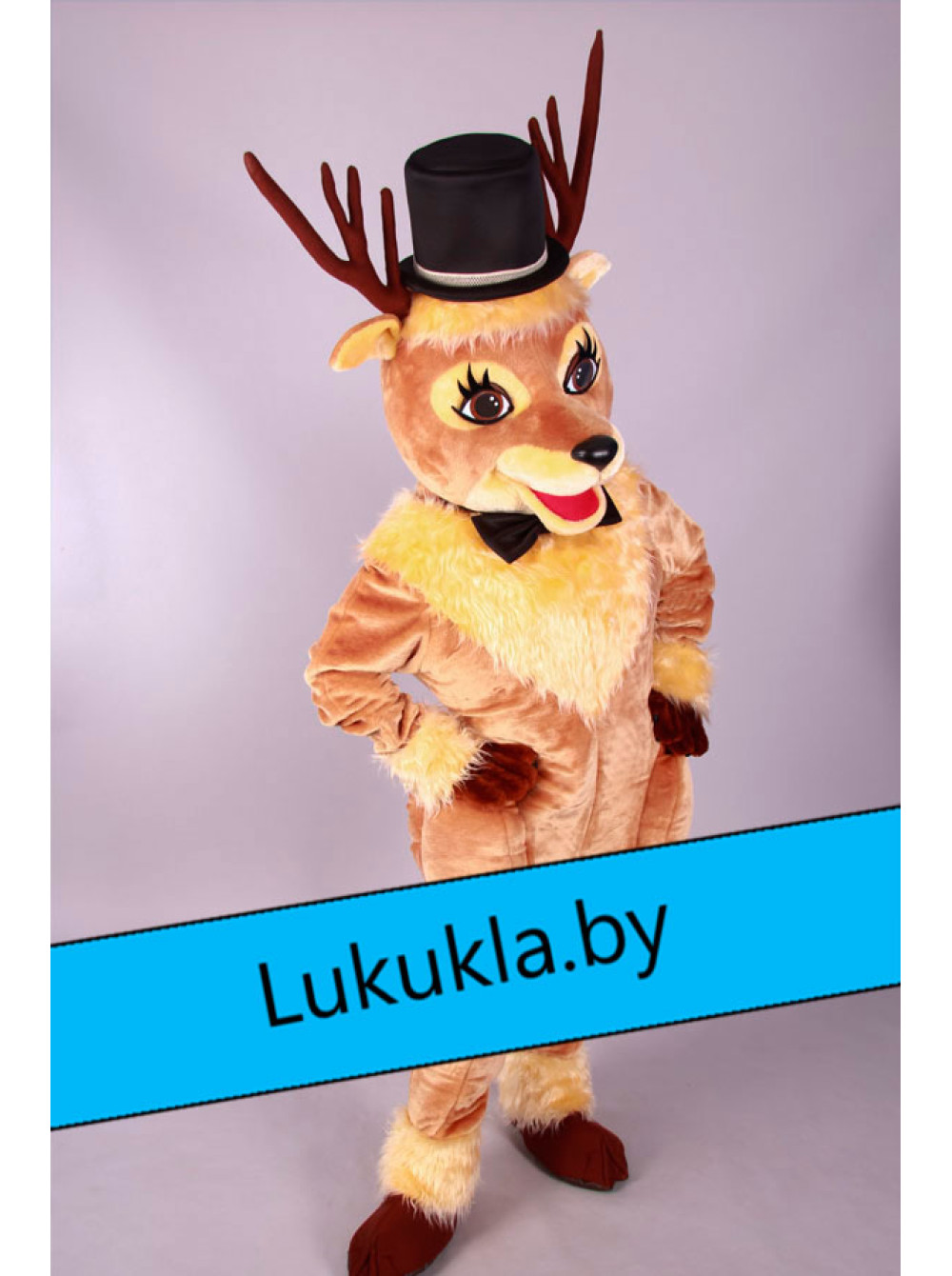 Ростовая кукла "Олень в цилиндре " это яркий пример того, как ростовая кукла может выступать в роли талисмана спортивной команды. Такой вариант костюма подойдет для различных спортивных мероприятий, рекламных роликов и т.д. Костюм не сковывает движений аниматора и позволяет абсолютно комфортно дышать ему. «Живая кукла» может без устали развлекать гостей на протяжении нескольких часов.