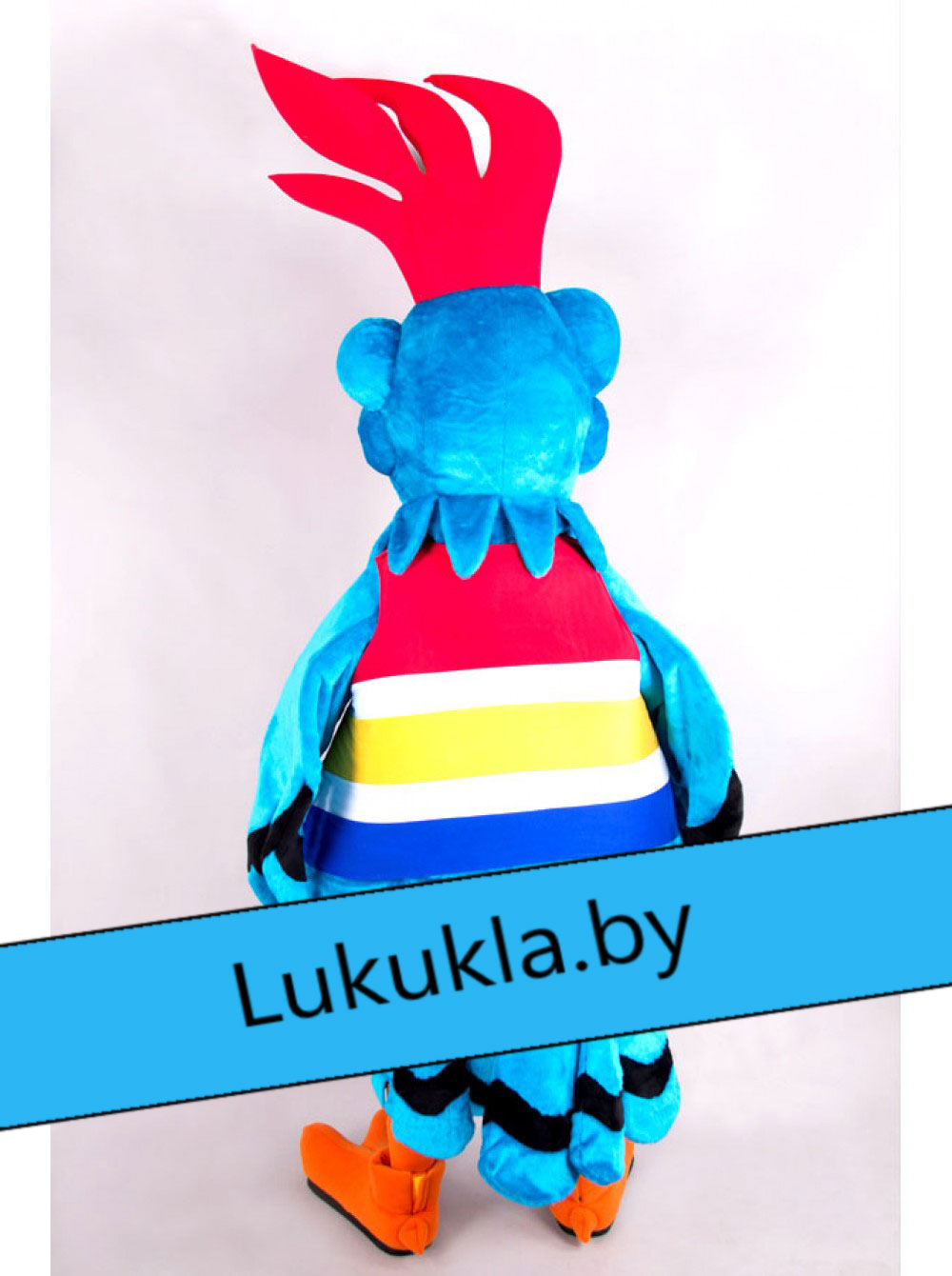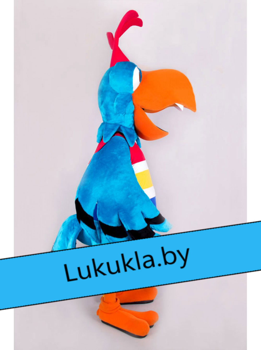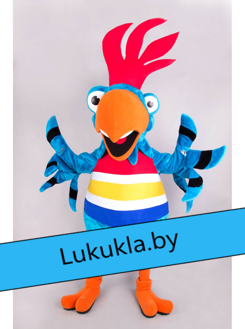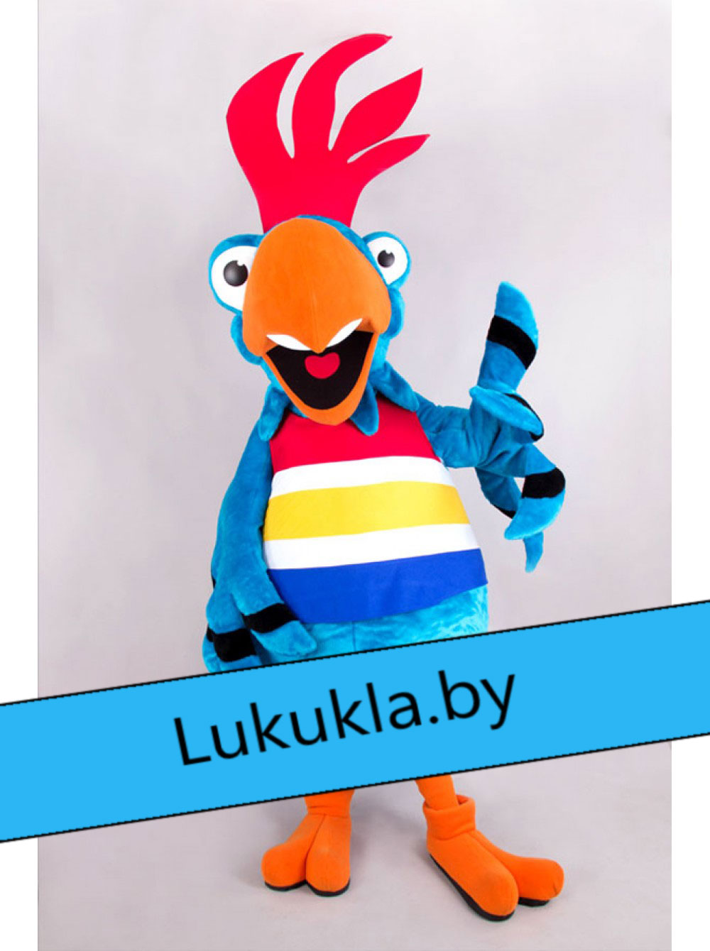 Ростовая кукла "Попугай Крэйзи"- пестрый окрас этого попугая притягивает взгляд. Сумасшедший хохолок и улыбка заставят прохожих людей улыбнуться этому пернатому в ответ. Костюм не сковывает движений аниматора и позволяет абсолютно комфортно дышать ему. «Живая кукла» может без устали развлекать гостей на протяжении нескольких часов.