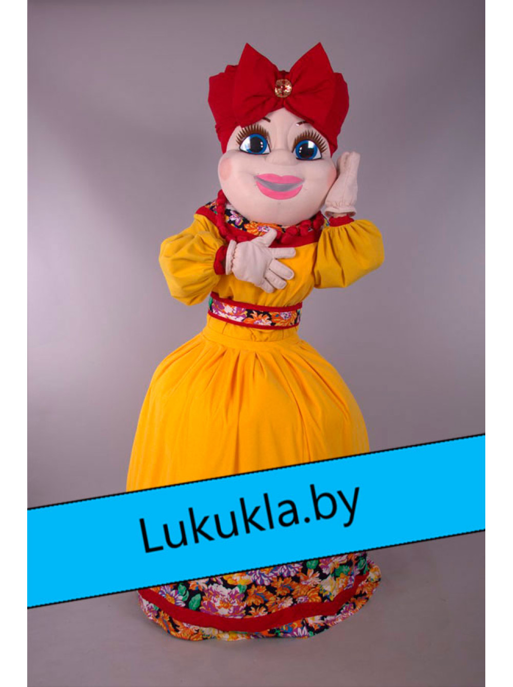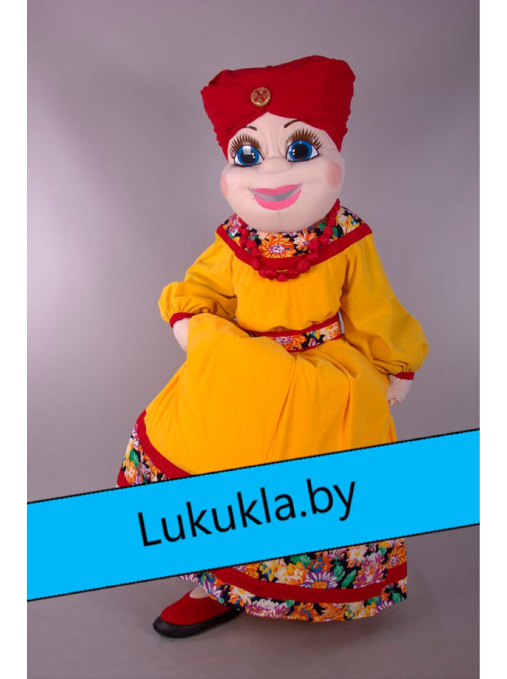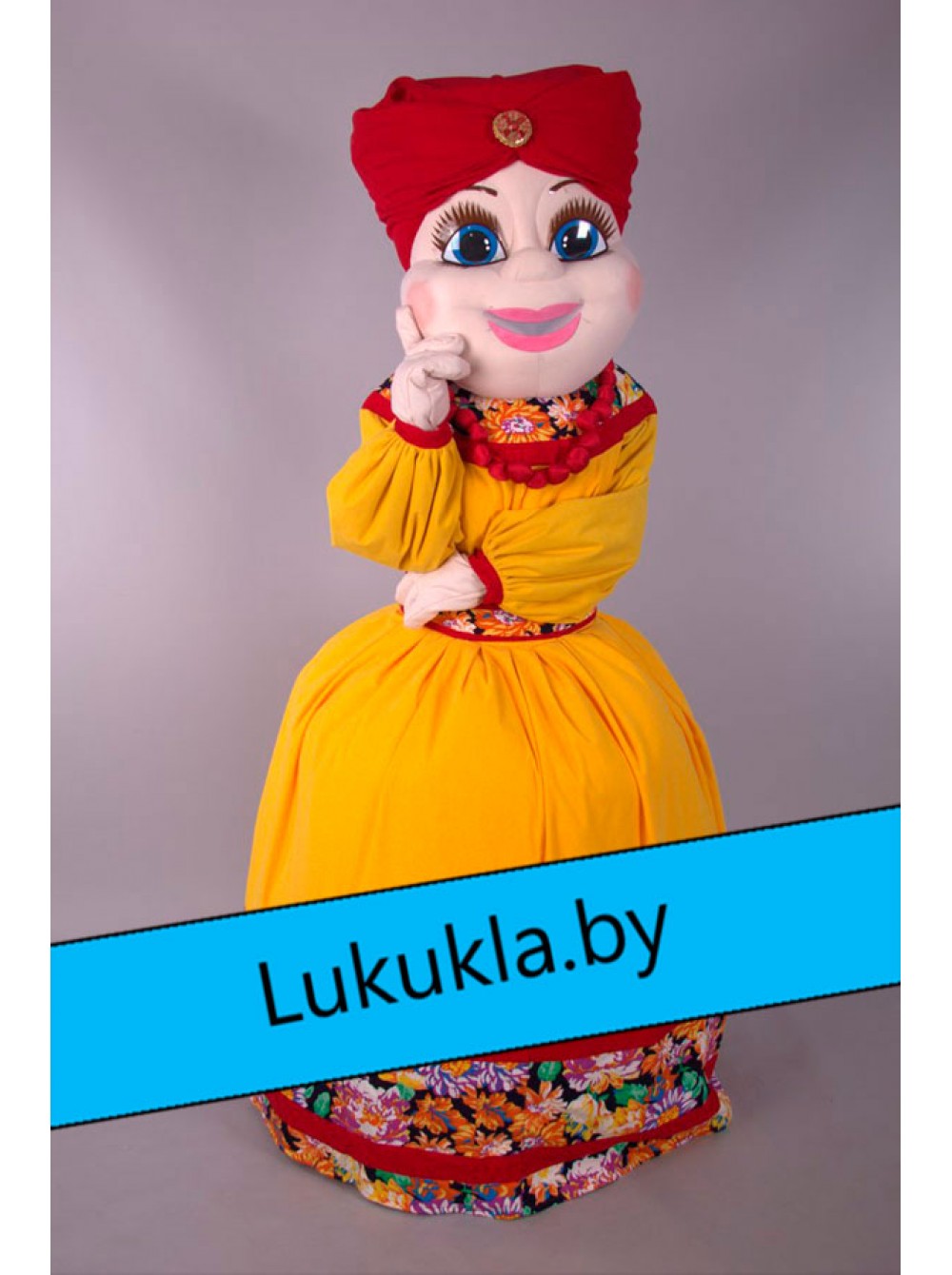 Ростовая кукла "Купчиха" яркий костюм, состоящий из прочного каркаса и мягкой обивки. Её используют для создания и поддержания особой атмосферы на мероприятиях, вечеринках и праздниках, для работы в фото-зонах или для привлечения внимания к стенду компании на выставках, ярмарках и пр